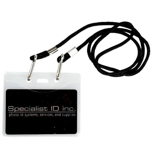 This holder is designed to hold one credit card size standard ID badge, insert Size: 3 1/2" X 2 5/8". The slot and chain holes at the top work with any of our lanyards, badge reels or other attachments.