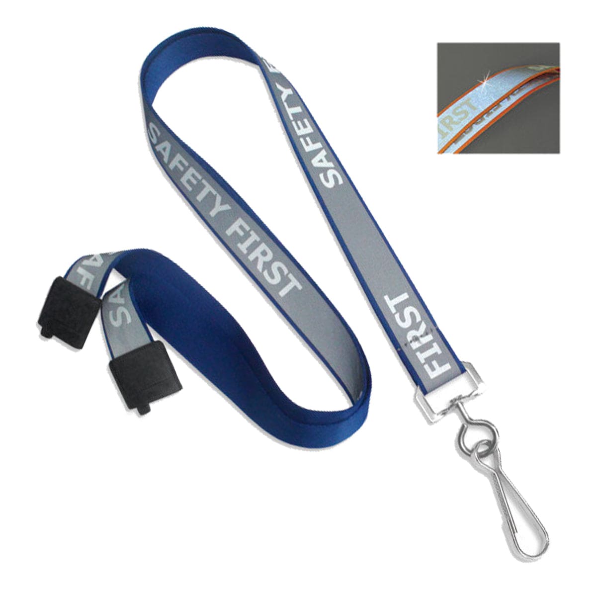 Our reflective pre-printed safety first lanyards are perfect for outdoors and other settings where the reflective material can increase visibility. With the printed safety message, this lanyard also serves as a great reminder to your company culture and value of safety.