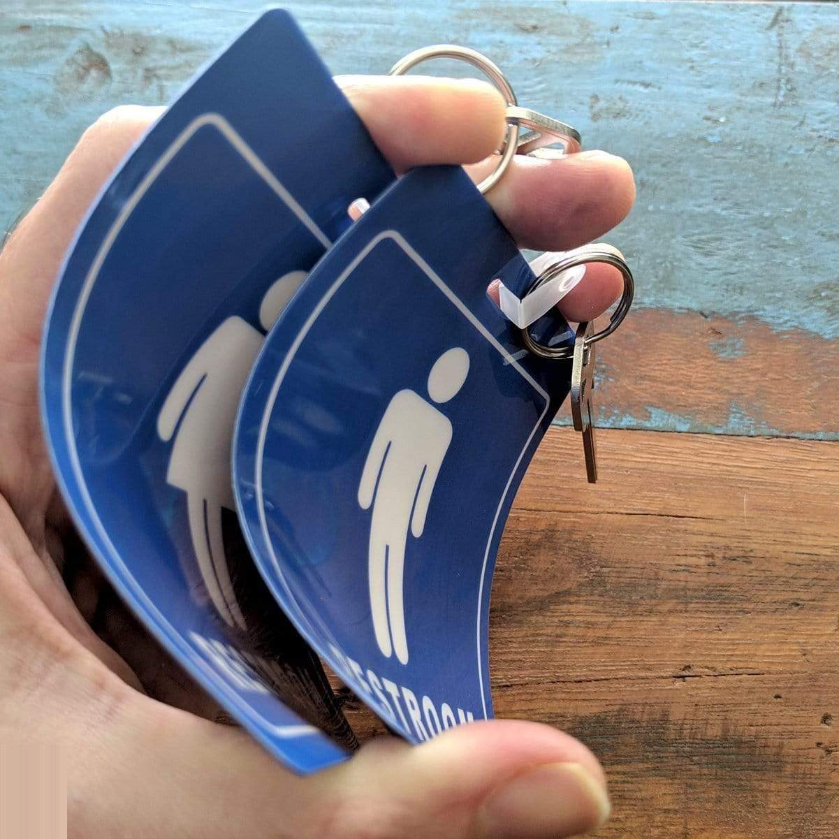Restroom Pass Keychain - Bathroom Tag with Key Chain Ring - Heavy Duty Large Passes for Men and Women Restrooms with Key Holder (Sold in 2 Pack) (SPID-9830-Blue)