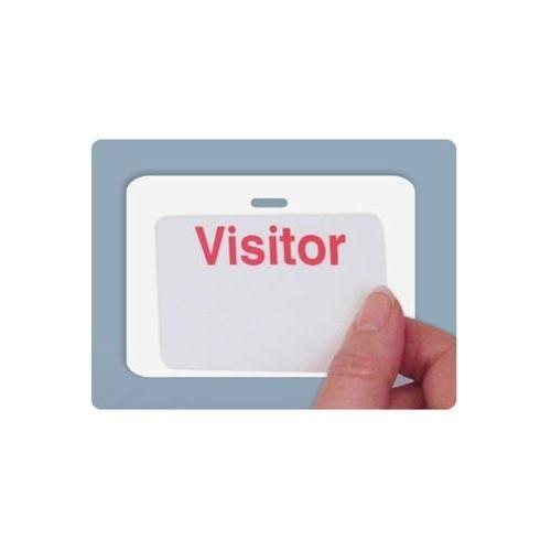 Reusable 3x3 card TEMPbadge™ badge "backer" backs are made of durable laminated cardstock with a wax front and have a pre-punched top slot hole for easy attaching to any plastic clip style lanyard or strap clip badge reel. Designed to be used with 3x2 adhesive sticker badges, these allow your visiting guests to easily attach (and remove) an adhesive badge without needing to stick it to their clothing. Great for visitor recognition when security and authorized access is of great concern - such as hospitals, schools, manufacturing plants, security offices and more.  Sold in bulk packs of 500.