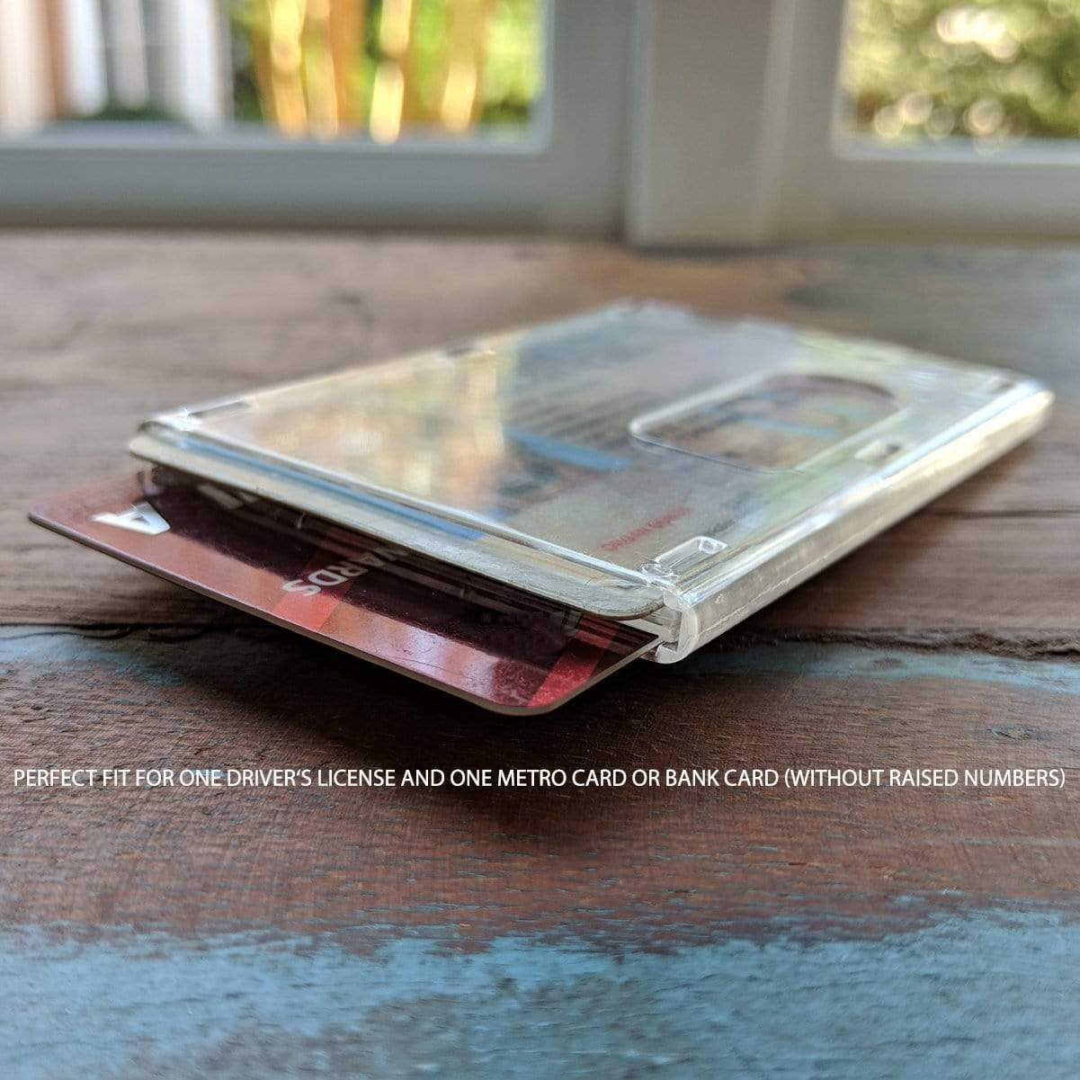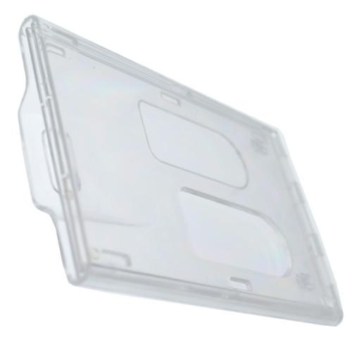 This clear, polycarbonate 2 card rigid badge holder (1840-6560) is designed to keep 2 cards safe under the toughest of conditions. It accommodates two standard credit card sized photo ID badges and has thumb slots to easily remove your ID's form the holder.