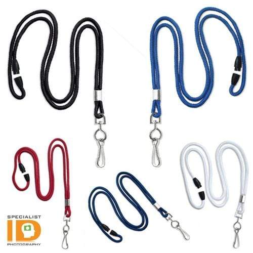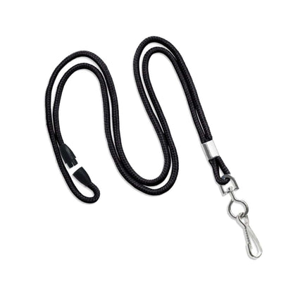 Simply slide the slot punched ID card through the nickel-plated steel swivel-hook and it'll be all set. This lanyard is 1/8" round and features a safety breakaway feature that allows the lanyard to snap apart if snagged or snared, yet afterwards can be put back together like new.