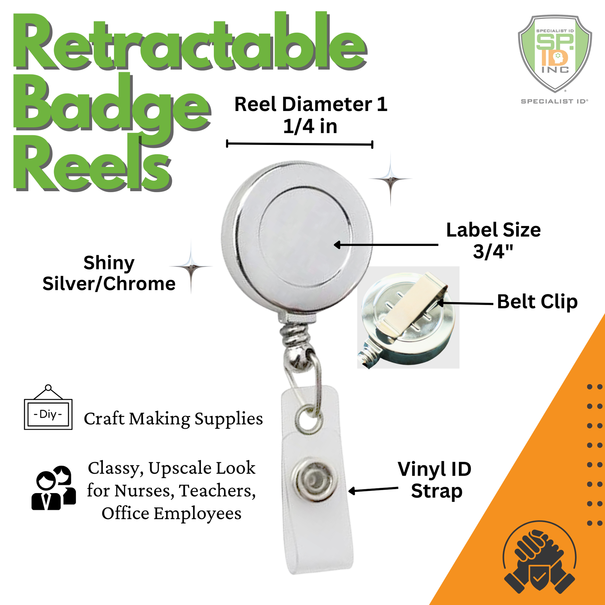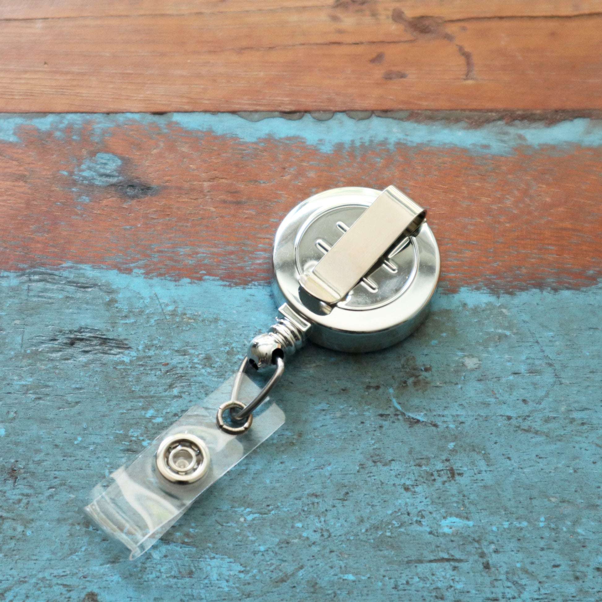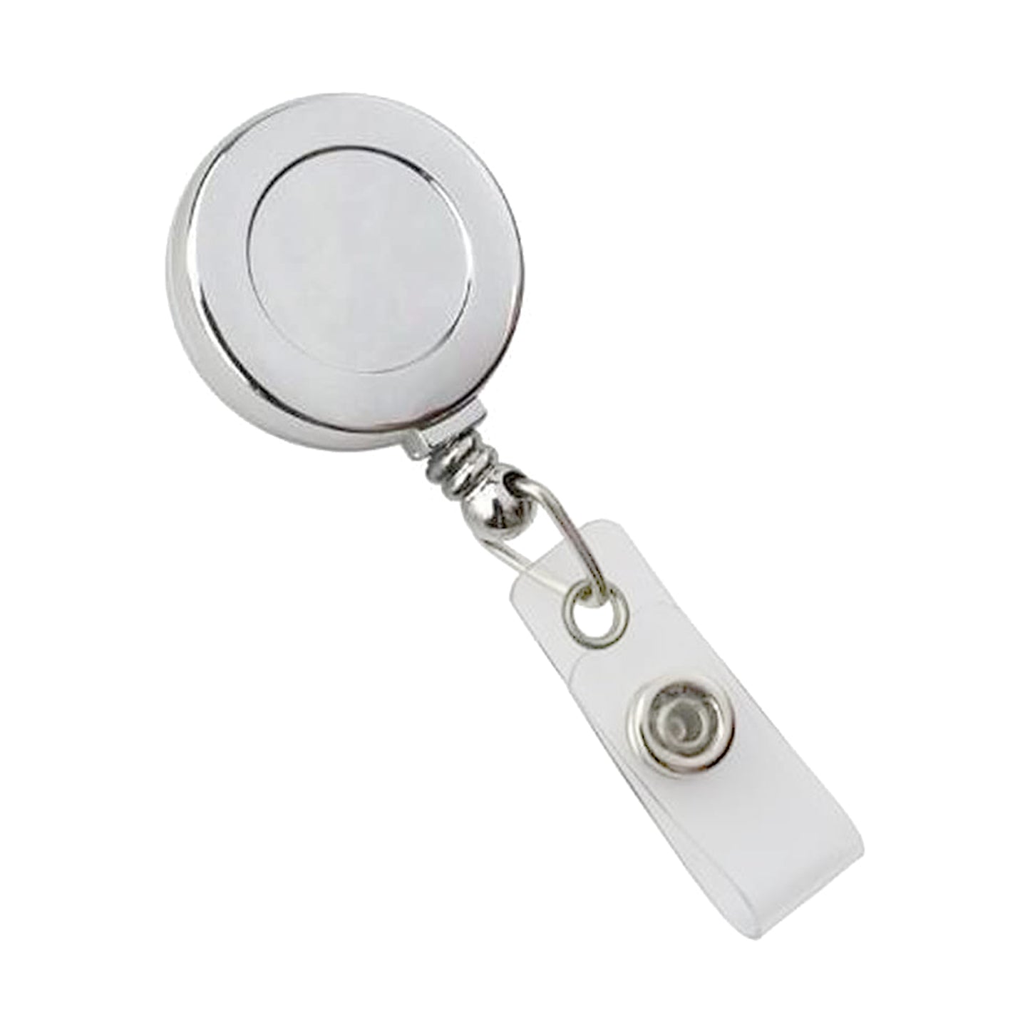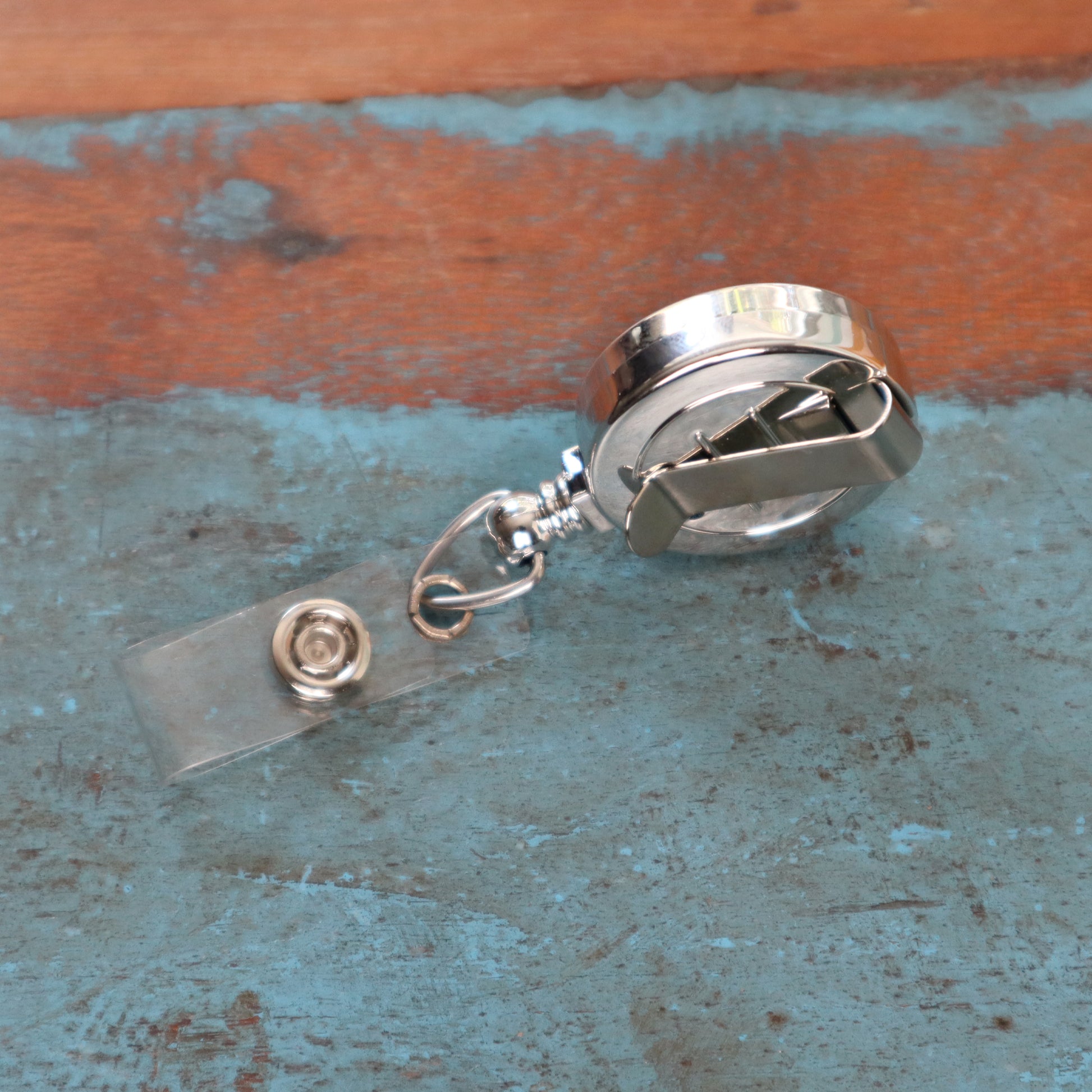 If you are looking for a cool, eye catching badge reel that also functions as a tiny mirror reflector, our silver chrome plastic retractable badge reel may just be the one. The silver plastic is very shiny and reflective, and looks better in real life than in our picture. With a cord length of 34", you will have easy access to using your keys or smart card ID badges while still keeping them intact to your belt loop, pocket or pants.