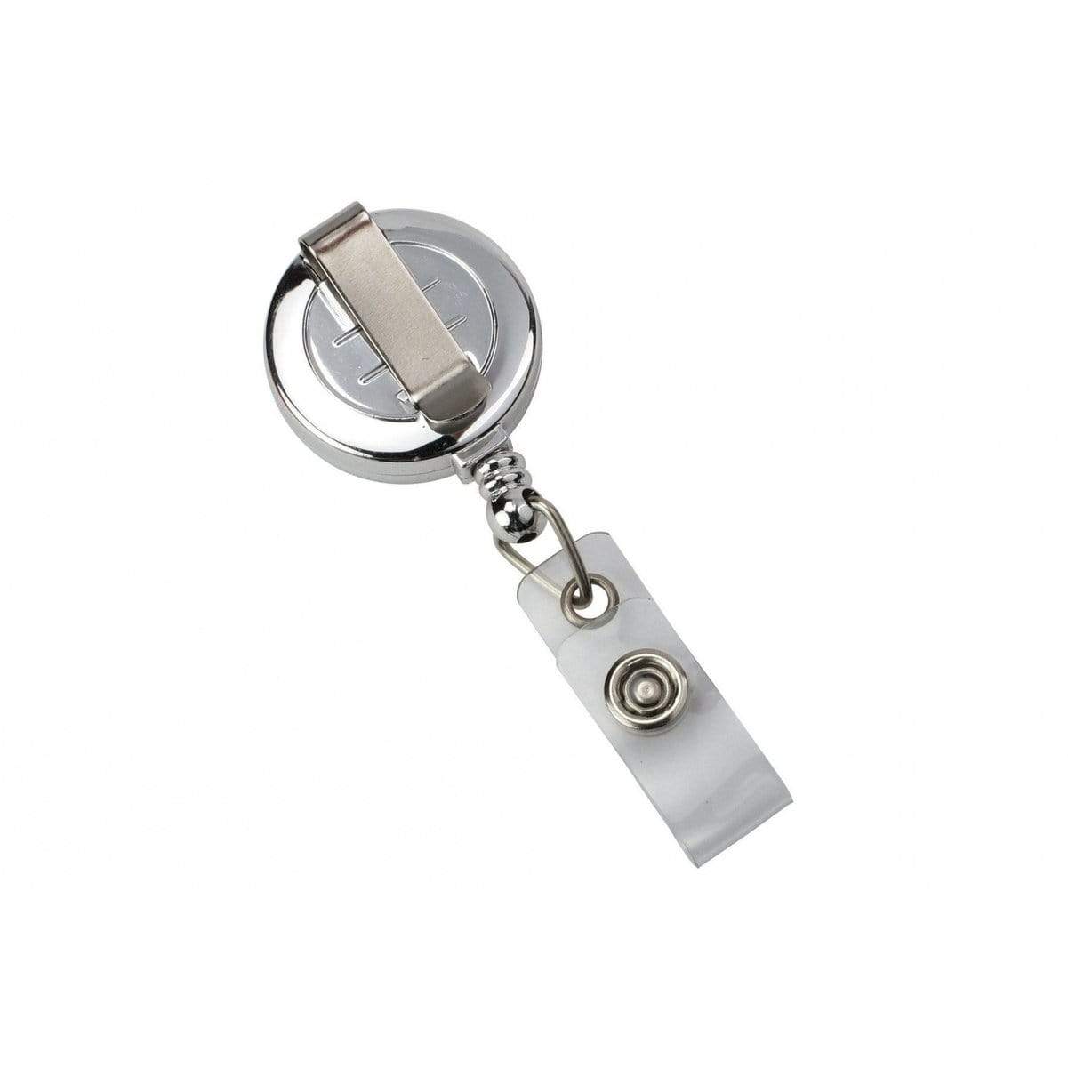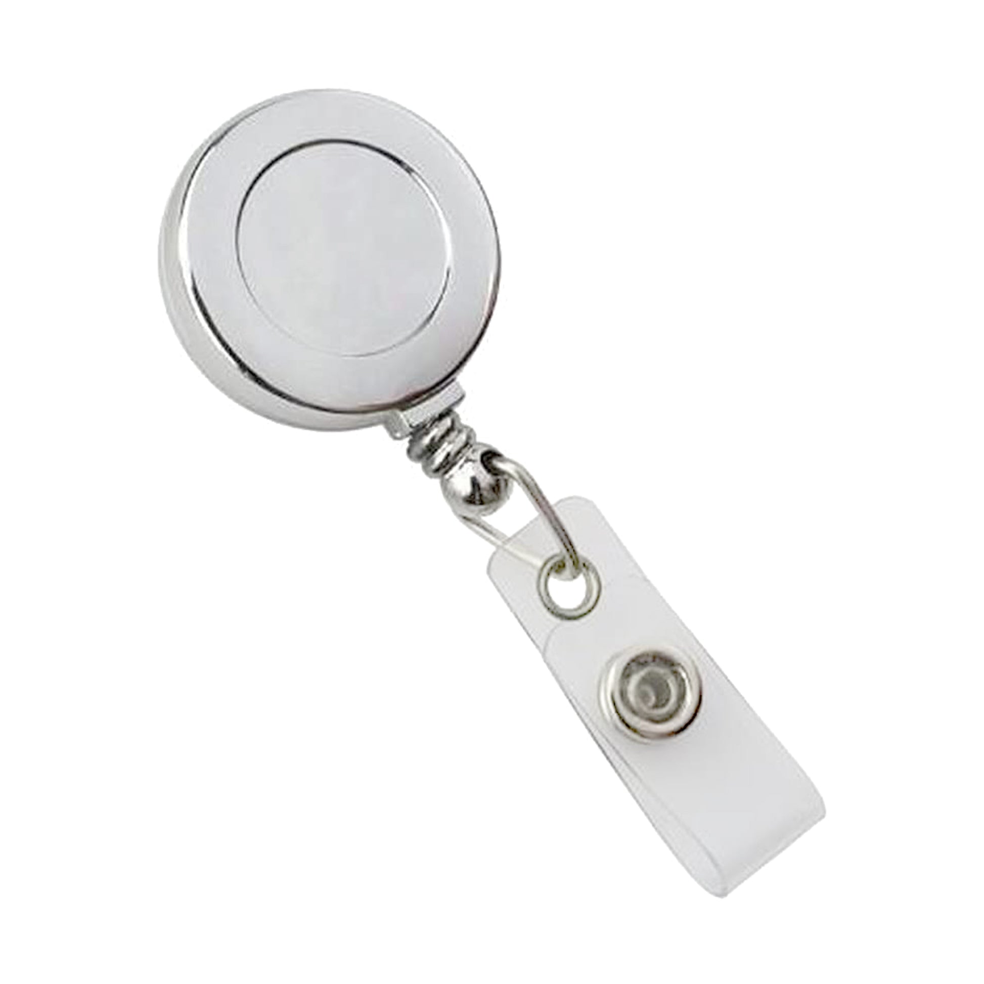 Chrome Plastic Badge Reel With Clear Vinyl Strap & Belt Clip (P/N 2120-3030)