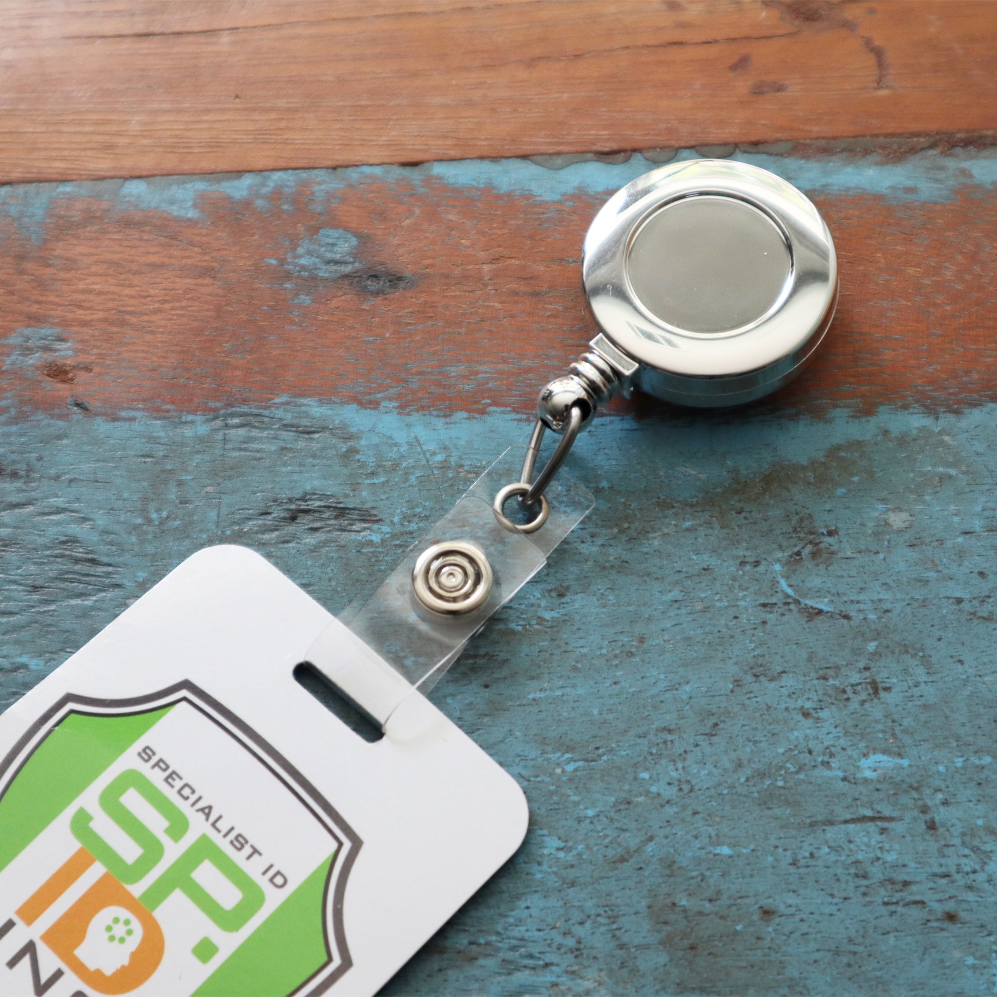 This badge reel has been rated for up to 100,000 pulls and has a standard ID badge strap clip, so you can loop it onto your slot punched ID card or most vinyl and plastic badge holders. There is no minimum order on this item, so feel free to order as few or as many as you would like.