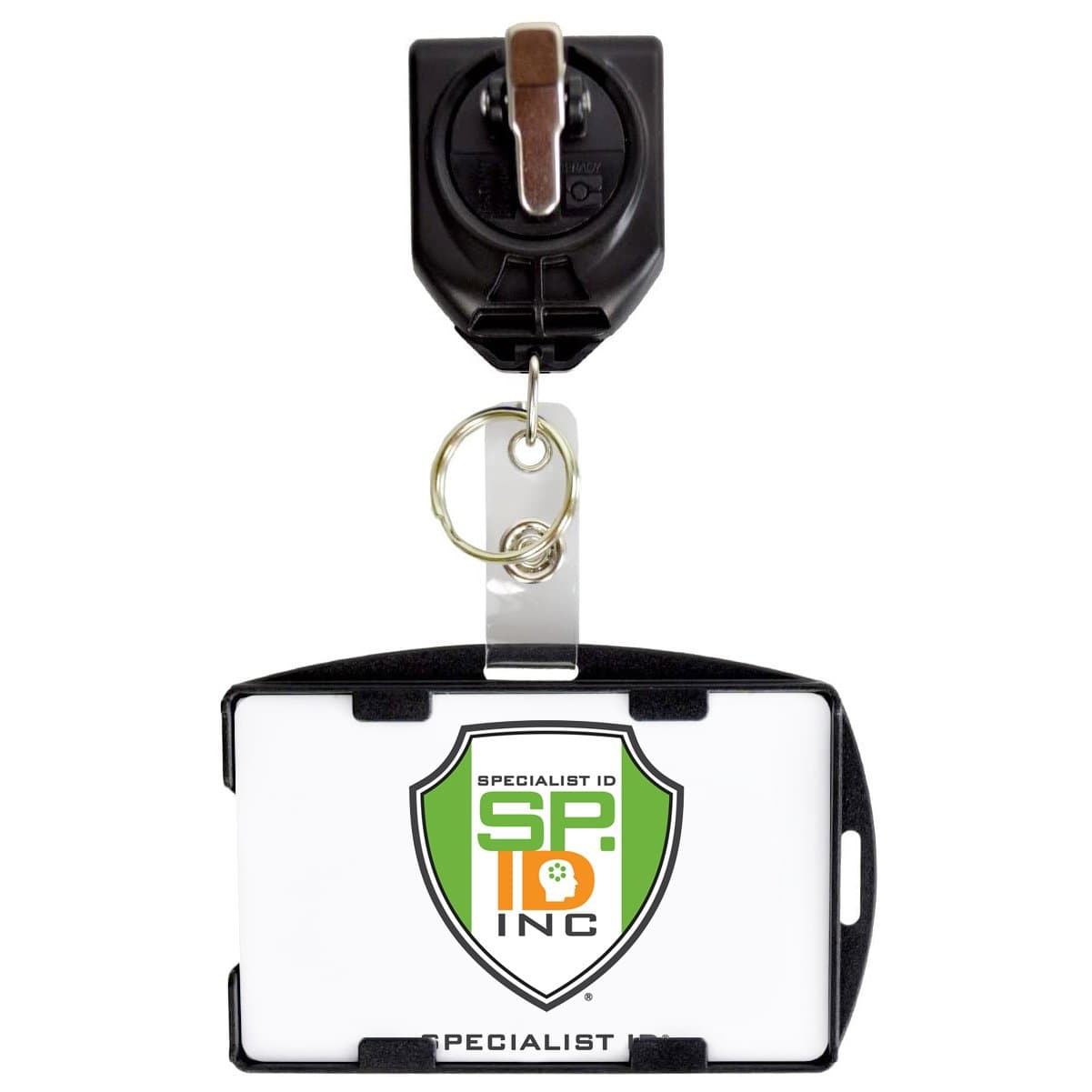 Features slot holes to display vertically or horizontally with any lanyard or badge reel attachment.