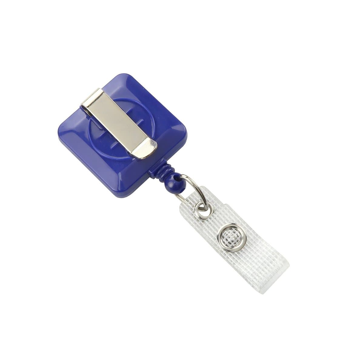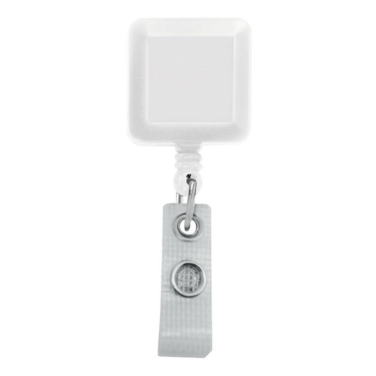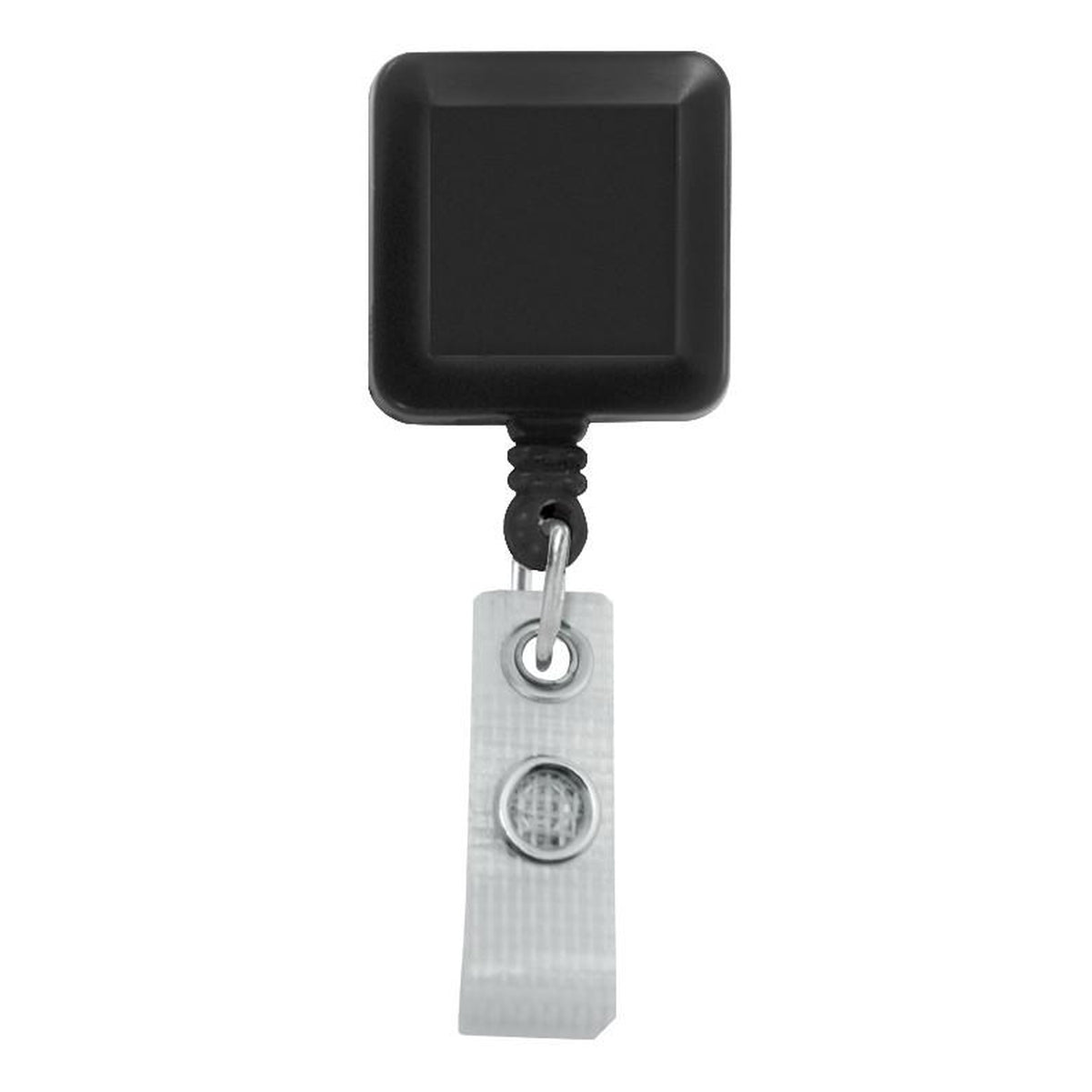 Rated for up to 100,000 pulls, this 1 1/4 in square reel is attractive and effective at securing your ID badge at work. Available in solid colors: Black, royal blue and white.