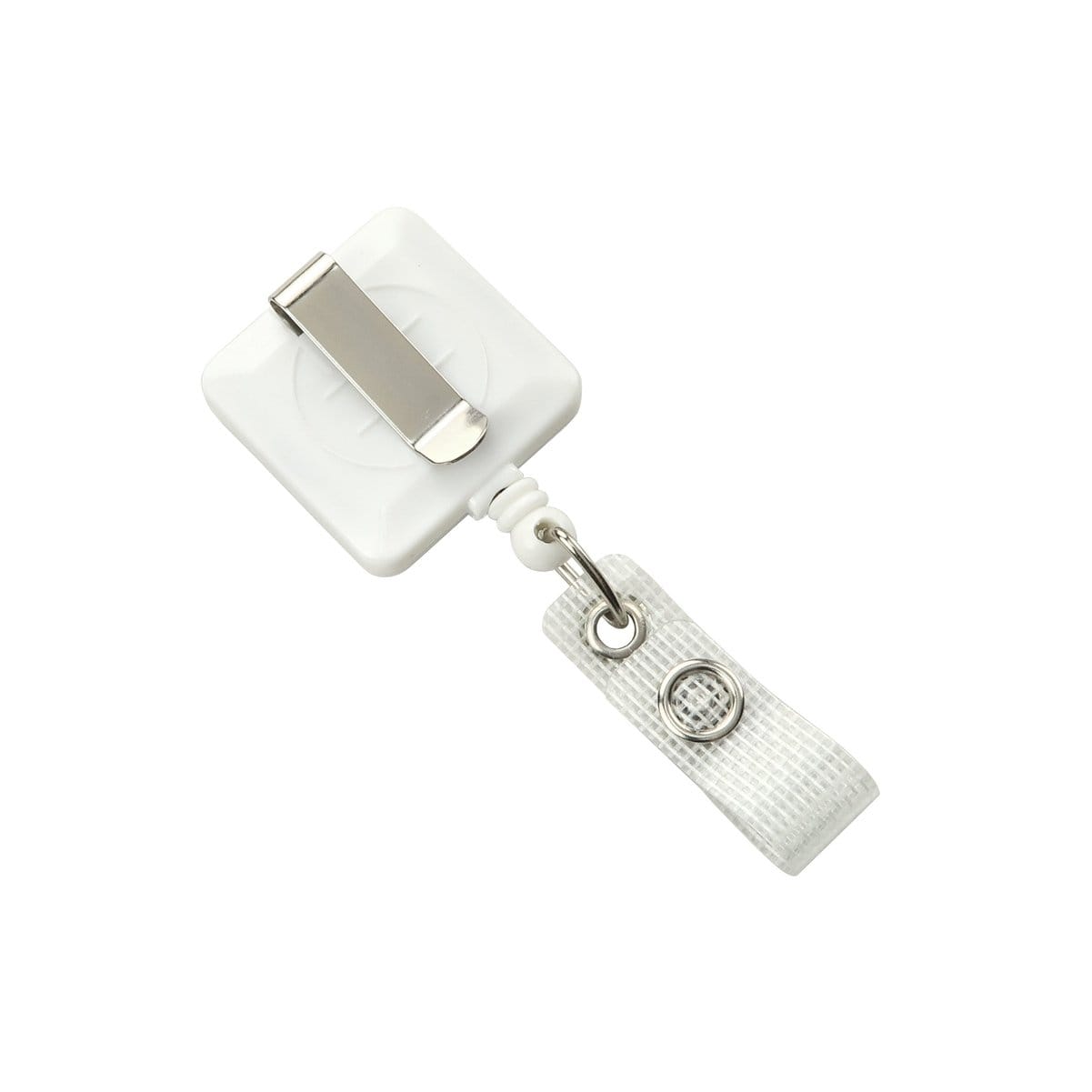 Our popular square shaped reels add a stylish modern appearance than the traditional circular shape, and they provide more surface area for your fingers to grip. Use the included reinforced strap to attach and have retractable reach of your slot hole punched ID badge or badge holder for everyday office access and accessibility. The standard belt clip attaches easily to your belt, pants or scrubs waistline, and the durable nylon cord extends up to 34"for quick card access.