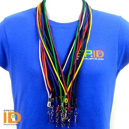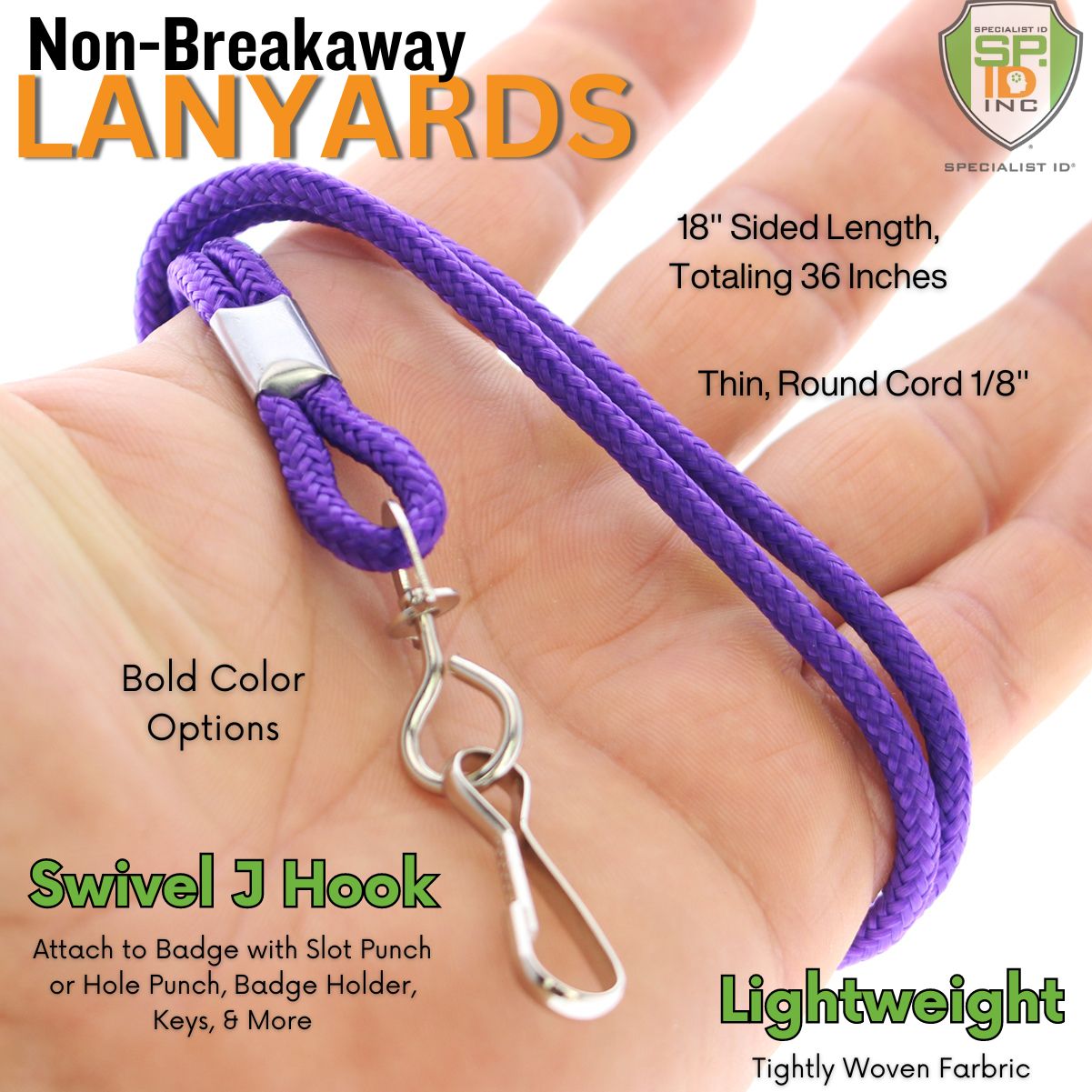 The standard non-breakaway lanyard with a metal swivel hook, 2135-30XX, is one of the most popular lanyards worldwide. It's a high quality 1/8" round braided lanyard with a 36" with a nickel-plated metal swivel hook that you can attach to any slot-hole punched ID card or ID badge holder.