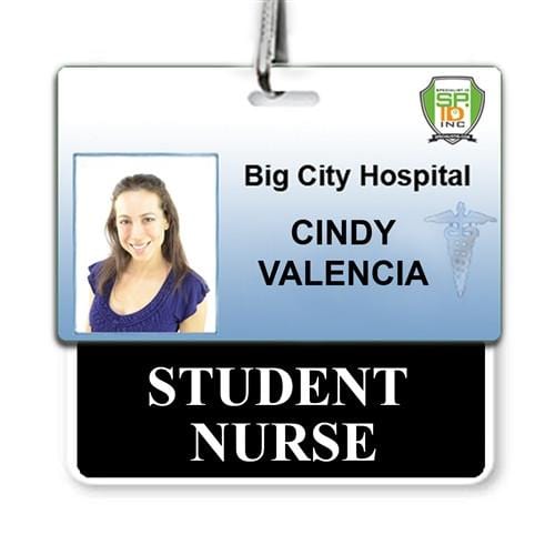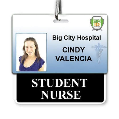 Our STUDENT NURSE badge buddy with large text and solid black border is a quick way to identify your student nurses on campus or busy hospital setting. Our badge buddies are printed on both sides of the card so your text will be visible, even if the ID is flipped around.
