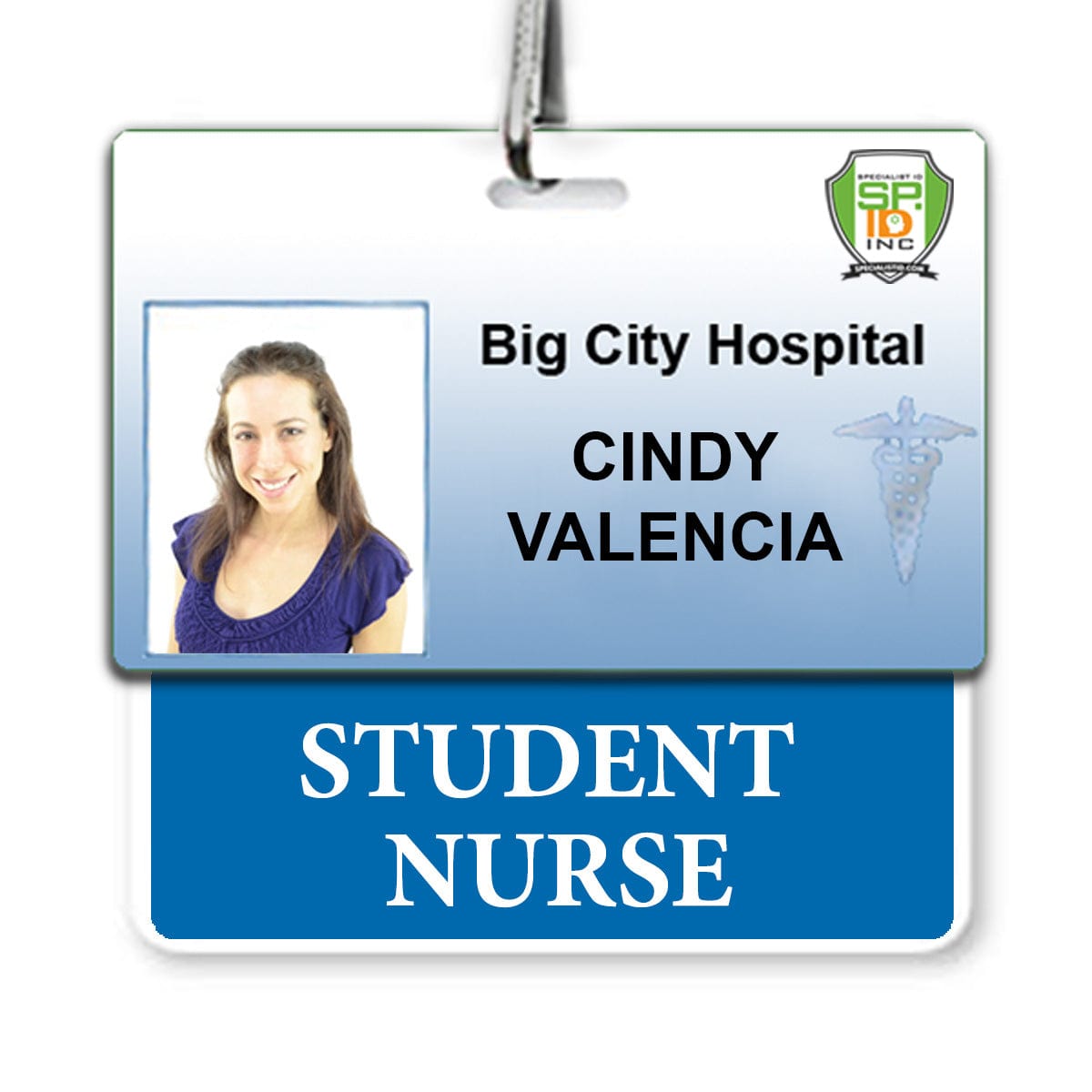 Our STUDENT NURSE badge buddy with large text and solid blue border is a quick way to identify your student nurses on campus or busy hospital setting. Our badge buddies are printed on both sides of the card so your text will be visible, even if the ID is flipped around.