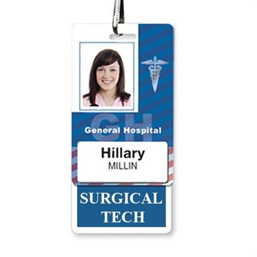 "SURGICAL TECH" Vertical Badge Buddy with Blue border