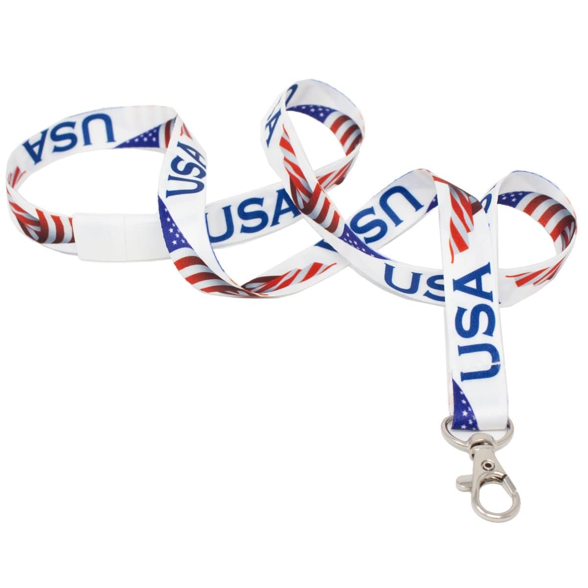 Our USA Flag lanyard is one good looking way to wear your ID badge while showing your patriotic pride.
