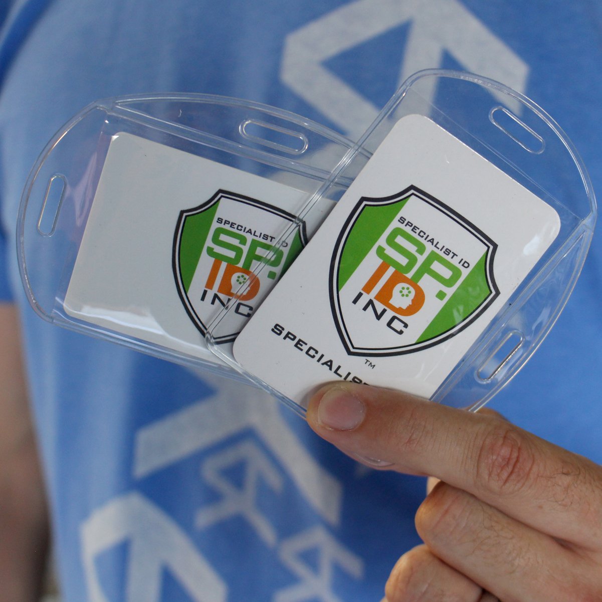 Sleek design vinyl sleeves to display ID Badges, employee access cards and more!