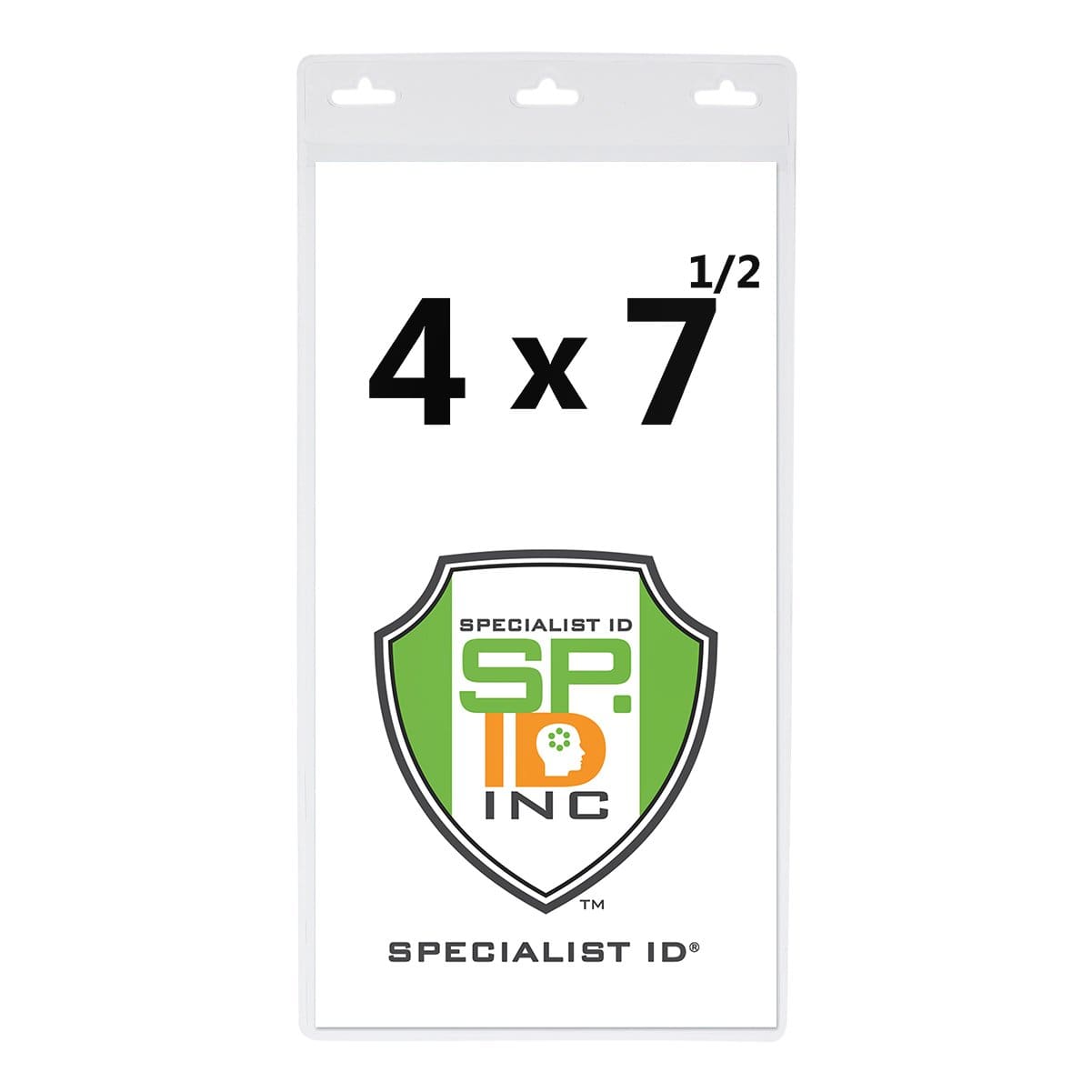 Maximum Insert 4.125" X 7.5" This 4 X 7.5 vertical oversize vinyl badge holder is one of our most popular over size holders for major events. Many sporting events use large format tickets that will work great with this holder. Printing your own tickets online to a regular sheet of paper also fit with minimum folding. This holder is made for 4" X 7 1/2" over sized badges, playoff tickets, event passes and more. It hangs vertically and has slot and chain holes for easy attachment to your lanyards, badge reels, neck chains etc. The vinyl is very flexible and strong, allowing it to stretch if grabbed or pulled way before it will break.No Minimum Quantity to Order.