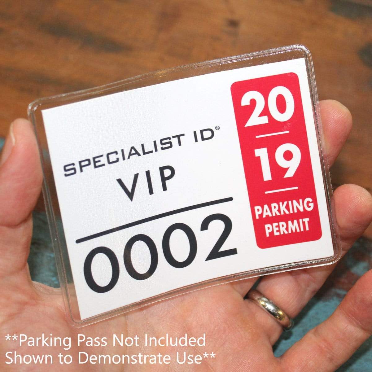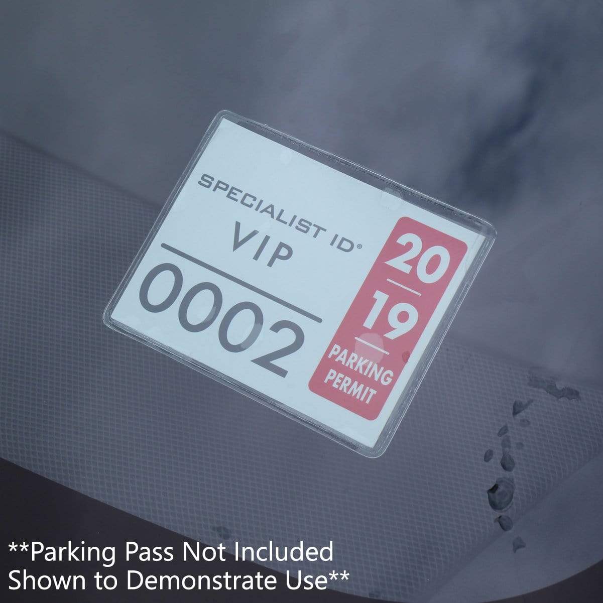 Large 4 x 3 Adhesive Badge Holders with Sticky Back - Clear Vinyl Parking Pass Holders for Windshield (CE-4P)