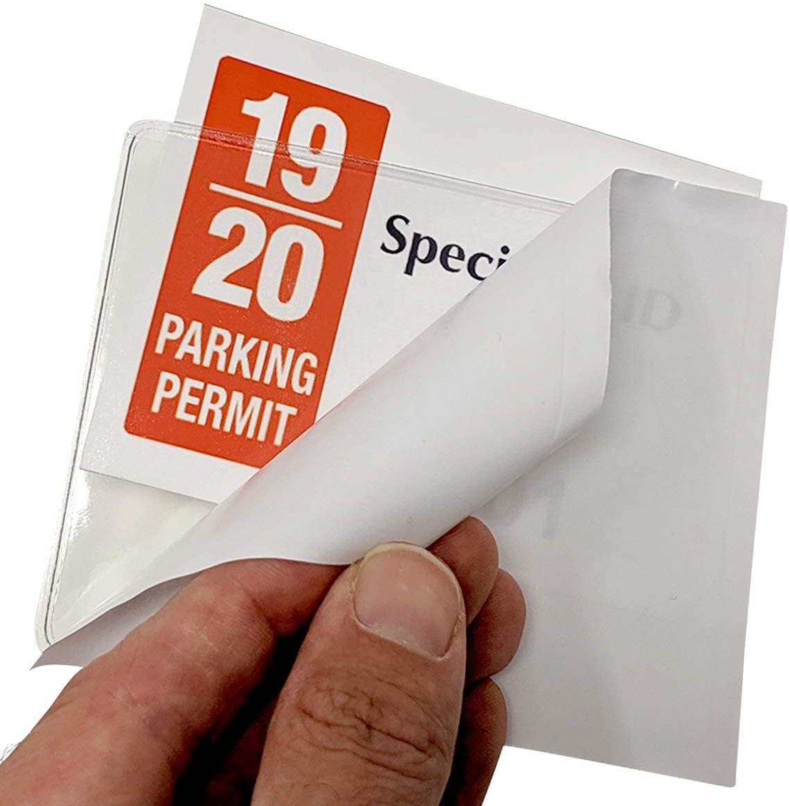 Display your auto parking credentials easily and securely with this clear adhesive parking permit holder.