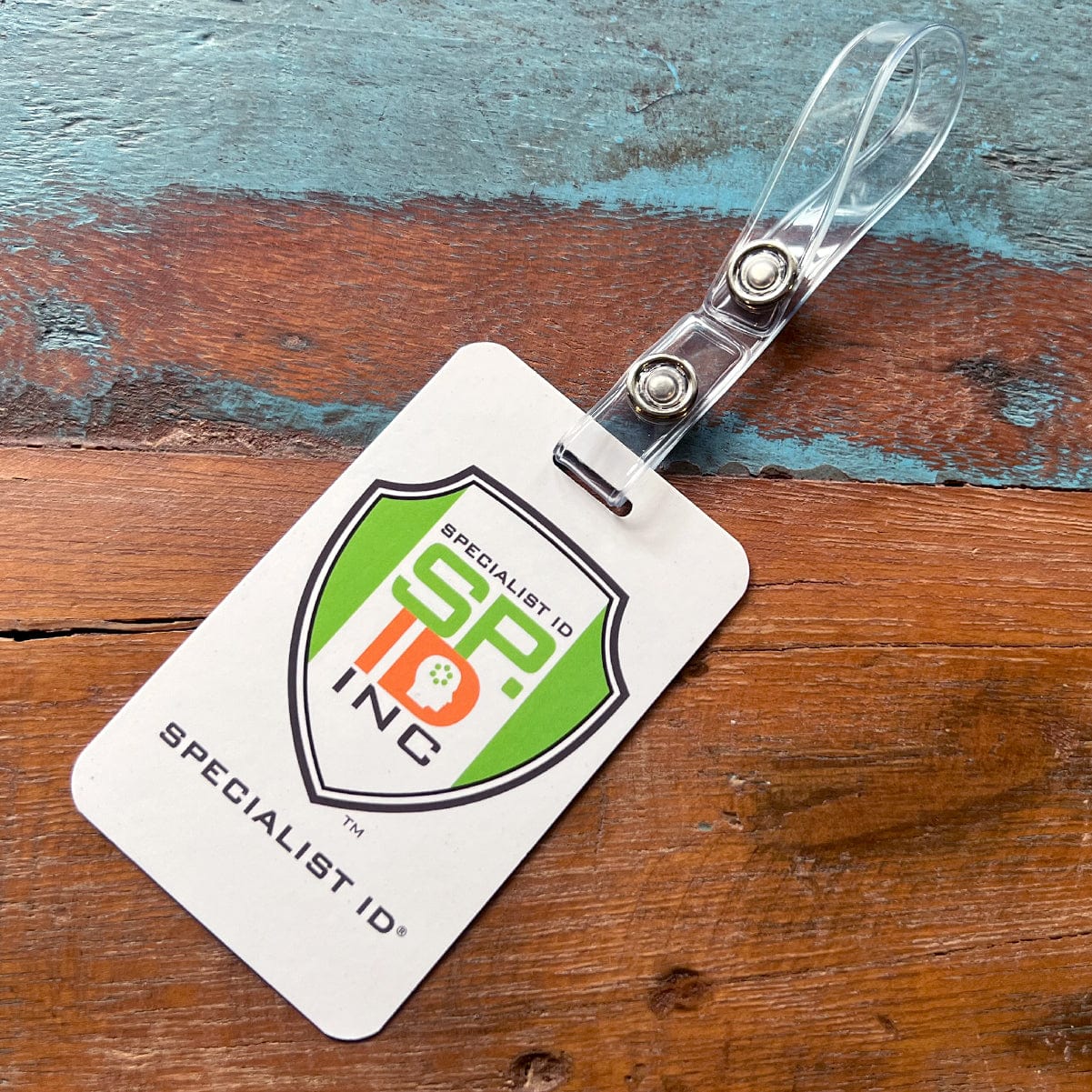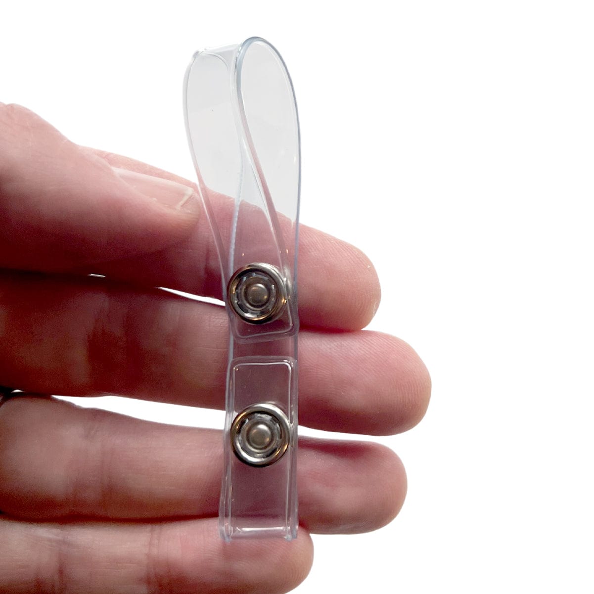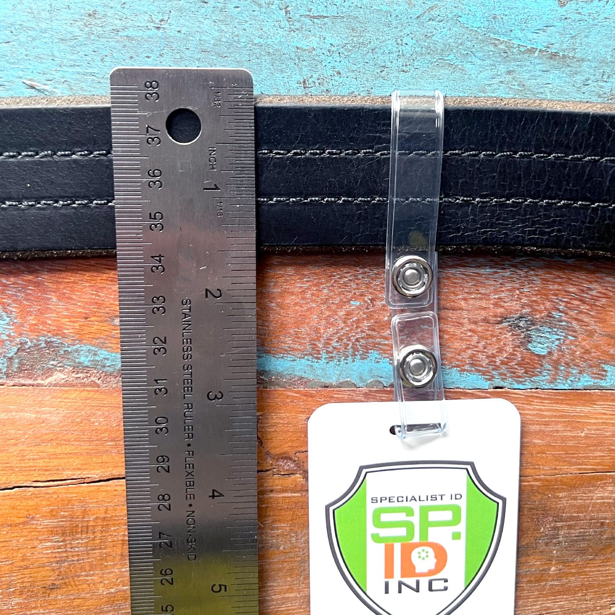 Carry your ID card or credentials on your belt with this long Vinyl Belt Strap. Small loop goes through slot in ID card keeping your important credentials close and out of the way. Large loop fits well over belt, shoulder epaulet or work bag handle straps. About 7" in total length. Great for nurse, crew uniforms and more!