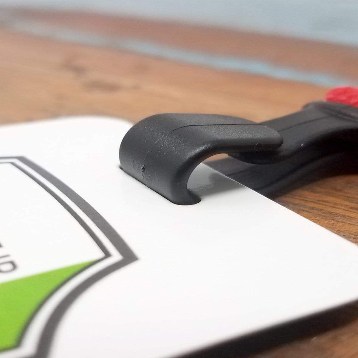 The breakaway feature means the lanyard will snap apart if snagged or snared, yet can snap back together afterwards. The wide "no-twist" plastic hook will keep your slot punched ID or badge holder facing the front. Simply slide them through the slot and they'll be set in place.