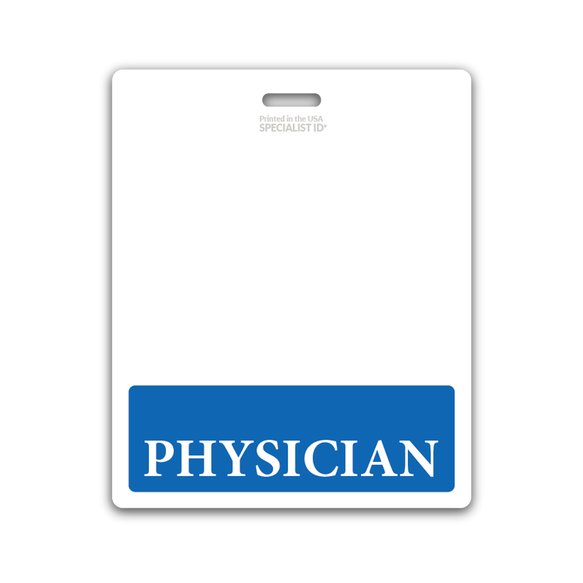 Our oversized "PHYSICIAN" hospital ID badge buddy is 1" inch longer than our standard size badge buddies. Ideal to be worn beneath any horizontal standard (credit card sized) Healthcare ID badge that is worn inside a badge holder. Typically, for badges that do not have a slot punched hole.